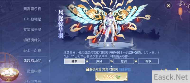 活动期间还有“锦绣良缘礼”限时上架,情人节专属头像等超值实惠奖励送上;“风起惊华羽”带来四款全新翅膀,为天命者们增添无穷魅力!