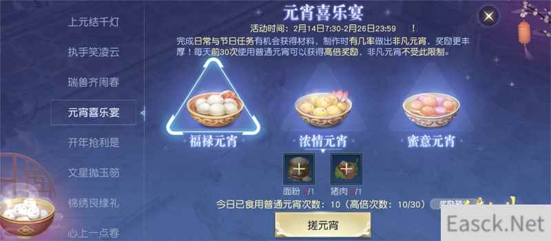 同时,这些活动均会送上元宵材料,天命者们以此参与“元宵喜乐宴”、包出不同口味的元宵,就能收获法宝碎片、魂珠等各类珍稀奖励!