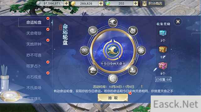 活动期间,天命者们每天都能参与到“命运轮盘”活动中,测测当天的命运是否与中州天命相符!若是符合便将成为天命之子、获取额外奖励,还能在其他活动中收获更多福利!
