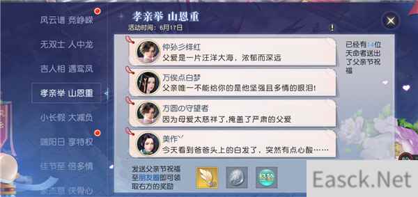 父亲节,为爸爸送上诚挚的祝福 6月17日当天,父亲节活动“孝亲举 山恩重”也将上线,只要在活动界面送出对父亲的祝福,并分享到朋友圈,即可收获金翅羽、经验、银币等奖励! 端午减负特权,坐骑、挂饰尽在超值豪华礼包 全新坐骑“喵呜开道”限时上架
