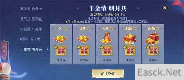 累计充值,即有豪礼相赠 “千金情 明月共”活动也将同步进行,不同档位奖励各异,6月13日还会重置活动、让天命者们领到更多福利!