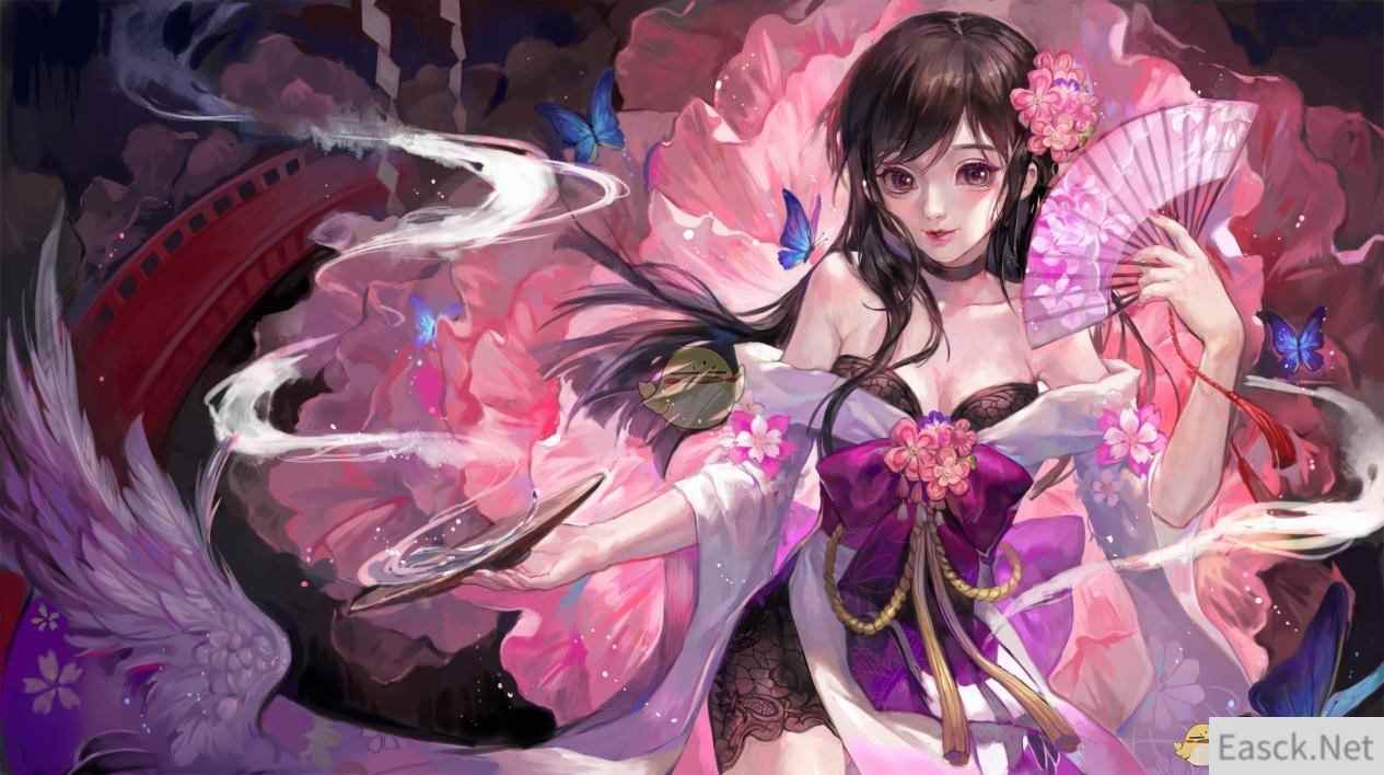 高卧枝头,慵懒偷得半日闲 重彩浓墨,艳丽若当红花魁的夜樱 身为当红花魁的夜樱,是教坊乐司中的头牌人物,每天自然要接触许多慕名而来的人士——这也为她收集信息、成为八部众最重要的情报来源提供了便利条件。 接下来的这幅同人画作,作者用浓重的水彩、融入油画技巧,将夜樱所处的环境在背景中进行了完美展现——风月场中酒绿灯红,当家花魁如穿花蝴蝶般游走在采花客间,却保得一身清白。 艳丽的色彩、妩媚的表情、勾人魂魄的摇扇举动,将夜樱“花魁”的身份刻画得淋漓尽致。最难能可贵的是,整体构图让人难生非分之想,如同前面几张同人画作一般,只想远观欣赏而非就近把玩。