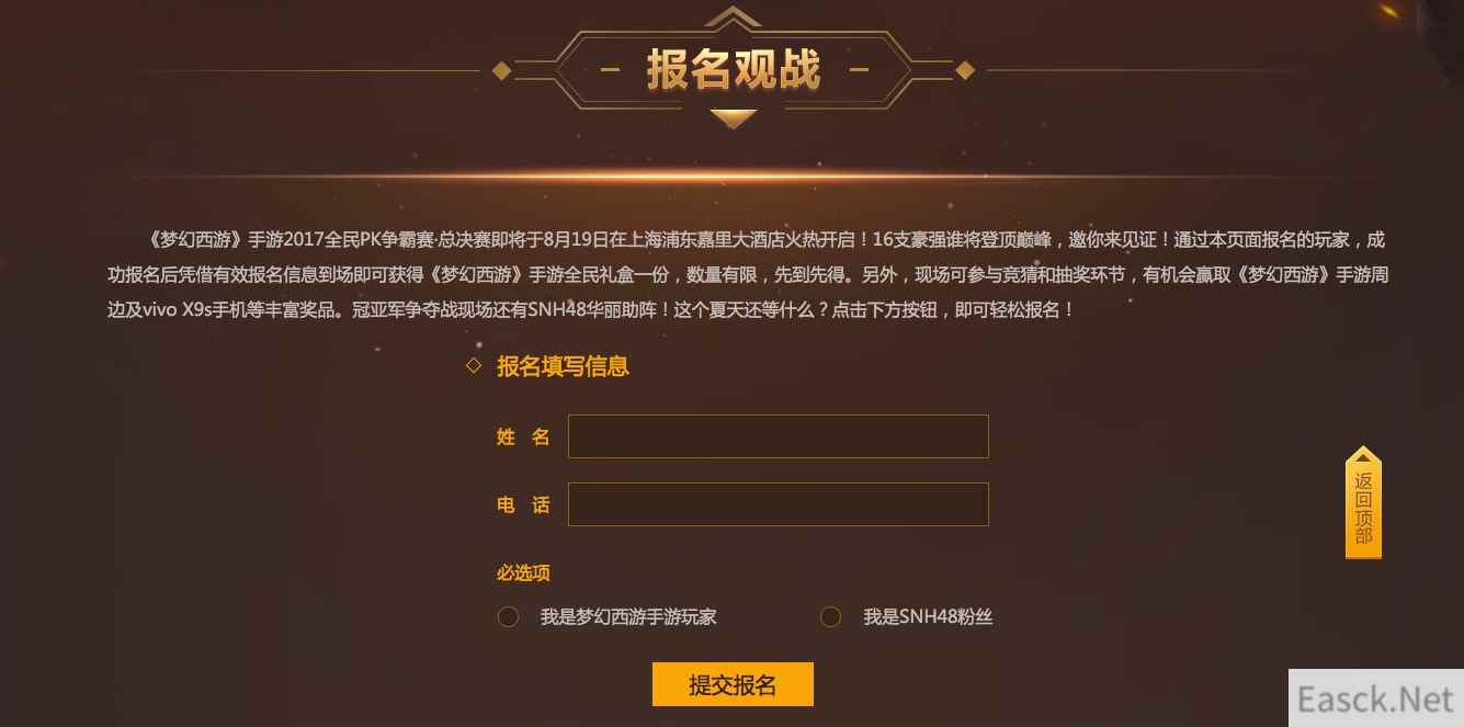 明星助威,巅峰对决一触即发 在明星表演赛结束之后,最受玩家关注的全国总冠军争夺战也将打响。两位美少女也将在现场,为自己喜爱的战队加油助威。相信在她们的激励之下,这两大战队也能战出自己的最好状态,为玩家带来一场力与美的盛宴! 在给予决赛战队祝福之后,两位美少女也将与所有关注全国总决赛的玩家,送上一份专属祝福。接下来,她们在直播间中,与玩家分享自己在《梦幻西游》手游中所发生的种种故事。 观战有礼,亲临现场分享喜悦 现在,全民PK争霸赛全国总决赛的观战玩家正在火热征集中。玩家可以通过专题页面(点击进入)报名观战,领略顶尖PVP战队的风采。获得观战资格的玩家,将在现场获得由《梦幻西游》手游精心打造的全民礼盒一份,并能参与到竞猜和抽奖环节之中,赢取更多丰厚游戏周边和vivo X9s手机大奖!在这个夏天,快来为自己收获一份幸运吧!
