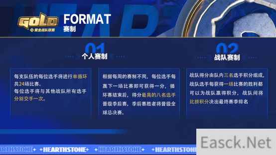 2022《炉石传说》黄金战队联赛分为三个赛季,第一赛季比赛时间为4月20日-5月28日,共5周,整体为单循环赛制。每位选手将与其它八个战队的三名选手分别交手一次,每人都将历经24场对阵。本届联赛特有的高强度对抗赛制将帮助各位参赛选手更加适应大赛节奏,炼石成“金”备战亚运!