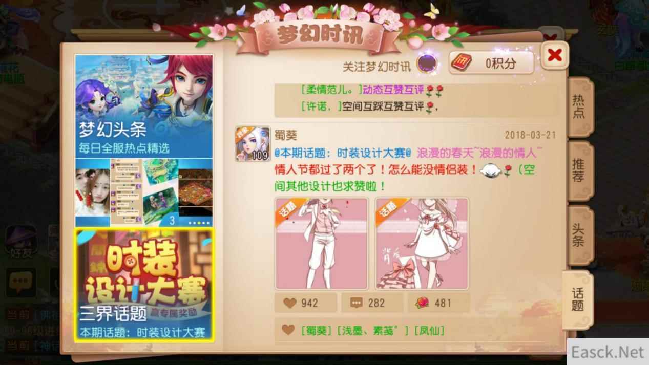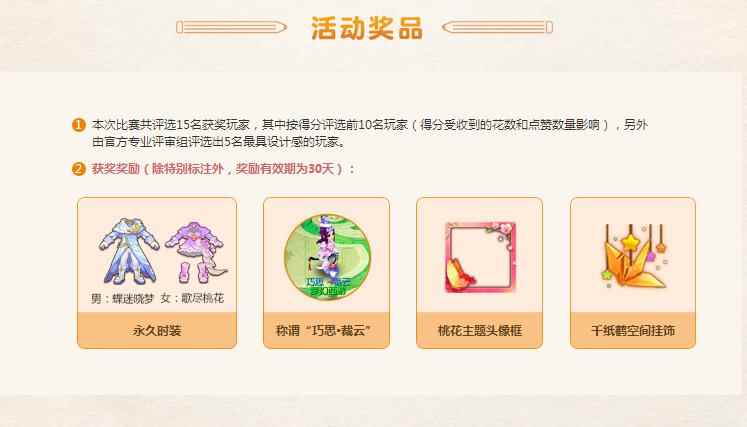 期待满满,三界时尚待你引领 随着获奖作品的尘埃落定,获奖玩家也分别获得《梦幻西游》手游所精心准备的永久时装(男:蝶迷晓梦,女:歌尽桃花)、专属称谓“巧思·裁云”、桃花主题头像框以及千纸鹤空间挂饰等惊喜好礼。值得一提的是,作为从众多参赛作品中脱颖而出的佳作,这些作品后续将成为官方设计全新时装时的参考。可以说,《梦幻西游》手游时装设计大赛举办的目的,就在于提供一方舞台,让玩家发挥创意灵感,去解读衣着打扮的时尚理念,在这一过程中,每一位玩家也都是引领三界时尚的排头兵。相信未来,《梦幻西游》手游还将推出更多专属活动,让玩家的梦幻征程充满更多乐趣体验。