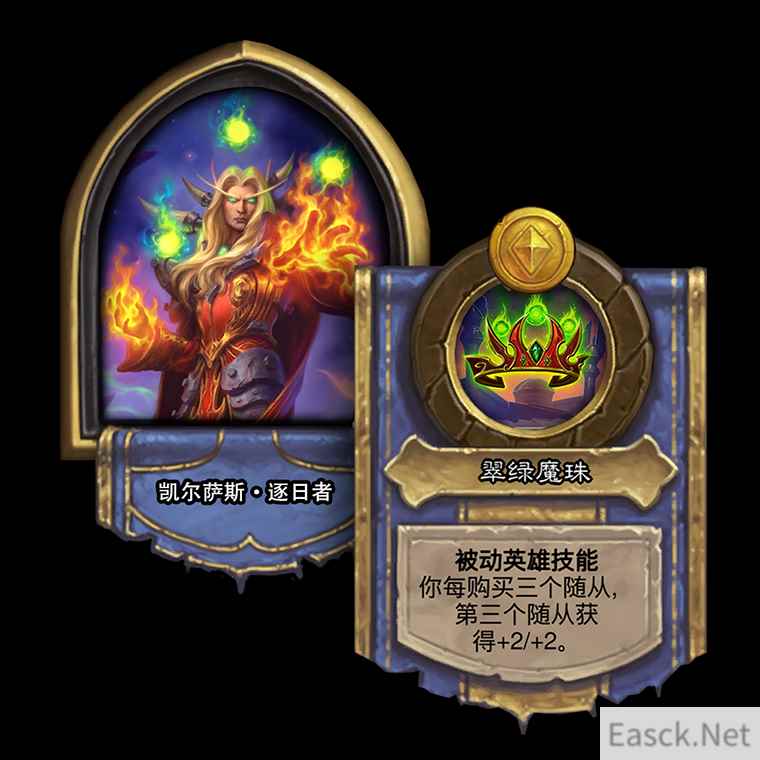 凯尔萨斯 翠绿魔珠 [被动]: 你每购买三个随从,第三个随从获得+2/+2。