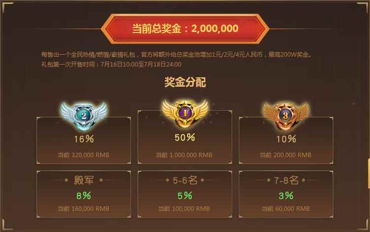 全民助威,丰厚礼包满满惊喜 本届全民PK争霸赛,《梦幻西游》手游精心推出“全民助威礼包”,每售出一个热情/燃情/豪情礼包,官方就会给总奖金池增加1/2/4元总奖金,让观战玩家也能够拥有更高的赛事参与感。此前,在7月16日-18日全民助威礼包的第一轮售卖中,玩家就彰显出超高热情,短短16分钟,所售出的礼包数量,就让总奖金提升到最高的200万元,不少玩家在开启礼包后,也幸运获得永久限量坐骑炎融牛和剑阵足迹。
