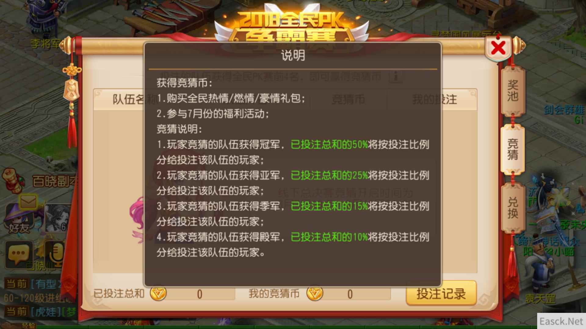 而对于观战玩家来说,如果你看好某一支战队,认为它能够跻身全国前四名,那就记得在全民竞猜玩法中,多多为他投注和加油哦。相信有亿万玩家的支持,本届全民PK争霸赛全国总决赛必将更加充满燃情与热血。