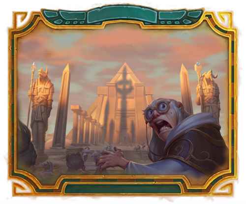 除此之外,酒馆也将迎来更多精彩纷呈的活动: 目标奥丹姆!——在“奥丹姆奇兵”的单人冒险模式开启之前,和伊莉斯·逐星同行,在一系列乱斗模式中重组探险者协会,并在旅途中赢得惊人的奖励! 古墓惊魂!——是时候制止怪盗军团和他们充满灾祸的邪恶计划了。《炉石传说》的最新冒险模式将于9月上线! 全新机制:复生&灾祸 强大任务牌再掀风云 奥丹姆广袤的黄沙中埋藏着无数秘宝,也暗藏着无限的危机。全新关键字“复生”将给予随从卡牌卷土重来的能力。拥有复生关键字的随从在首次被消灭时会自动复活,并具有1点生命值。