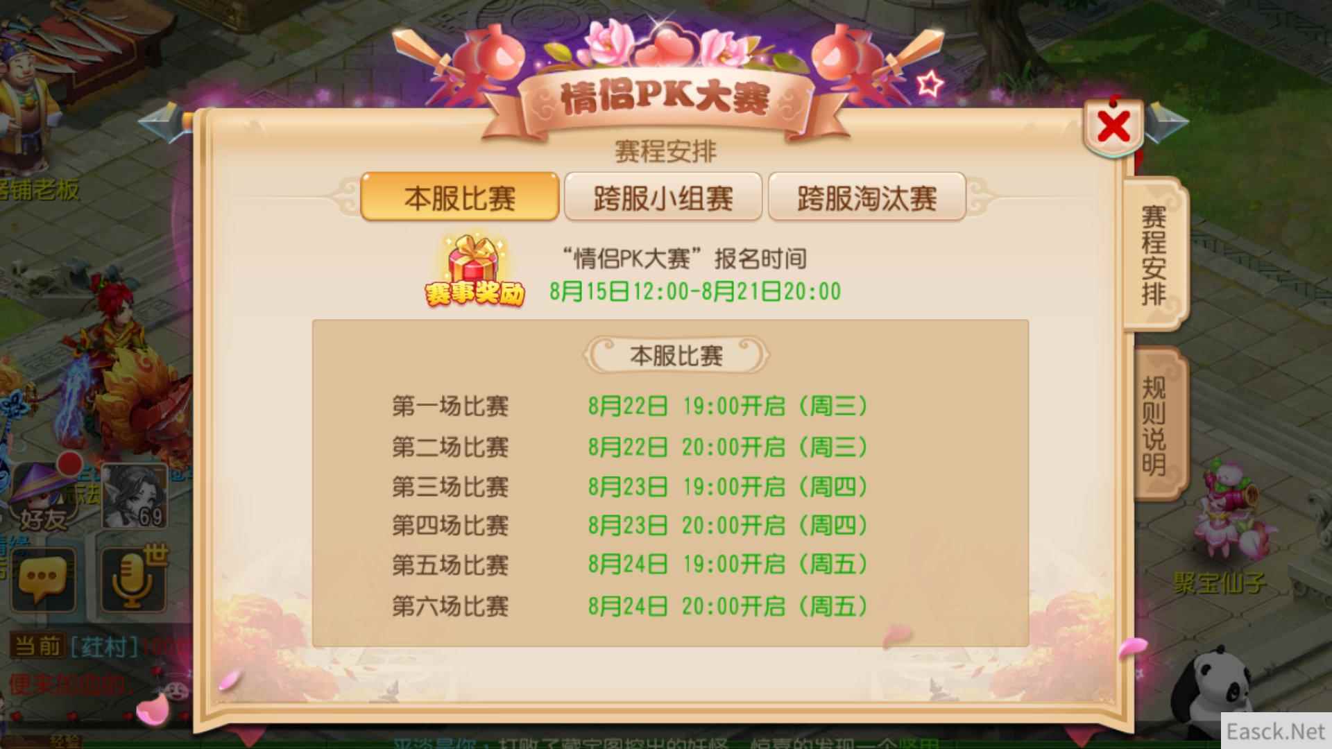 自8月15日,第四届情侣PK大赛开启报名以来,众多情侣档纷纷积极踊跃参赛,期待在本届赛事上,在全服玩家的见证下,与心爱的那个TA一起加冕“最佳情侣档”荣耀。现在,本服小组赛火热开赛,情侣的荣光之旅也正式扬帆起航。8月22日-8月24日,6轮小组赛好戏连台,每场比赛限时40分钟,胜一场得9分,平3分,败1分,弃权0分,最终,精锐、勇武和神威每个组别中的前两名,将代表本服参加全服比拼。
