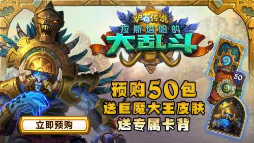 “拉斯塔哈的大乱斗”预购现已开放。选择预购标准合集,包括50点奥术之尘,赠送50包“拉斯塔哈的大乱斗”卡牌包,“喧哗乱斗”卡背图案,以及萨满祭司新英雄:拉斯塔哈大王!此外,你还可以选择挑战合集,包含17点奥术之尘,赠送17包“拉斯塔哈的大乱斗”卡牌包和“喧哗乱斗”卡背图案。 想要了解更多《炉石传说》近期福利,或是新版本的内容,就请登录《炉石传说》官方网站:9.163.com前来查看吧。 |