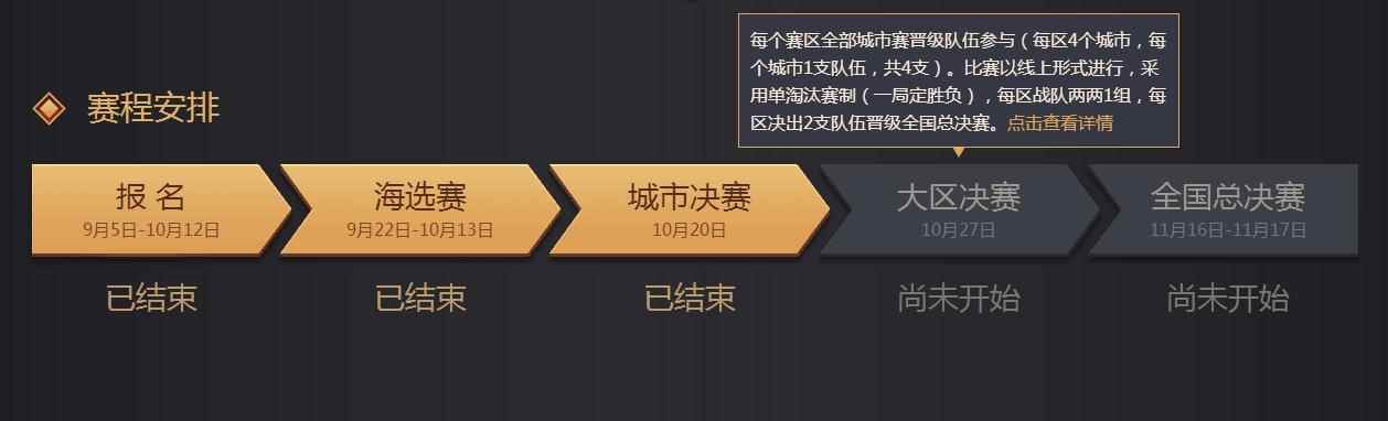 赛制解析,火力全开一争高下 根据赛事规则,大区赛阶段同样采用“一局定胜负”的单淘汰赛制,每个大区的4支城市冠军战队由系统随机产生对阵,一局定胜负,决出晋级全国总决赛的2支战队。也就是说,共有8支战队可以入围全国总决赛。在距离梦想的冠军宝座仅有咫尺之遥的情况下,相信历经海选赛、城市赛重重洗礼的各大城市冠军战队,必将全力以赴,毫无保留地为亿万《梦幻西游》手游玩家上演多场热血燃情的PVP战役。