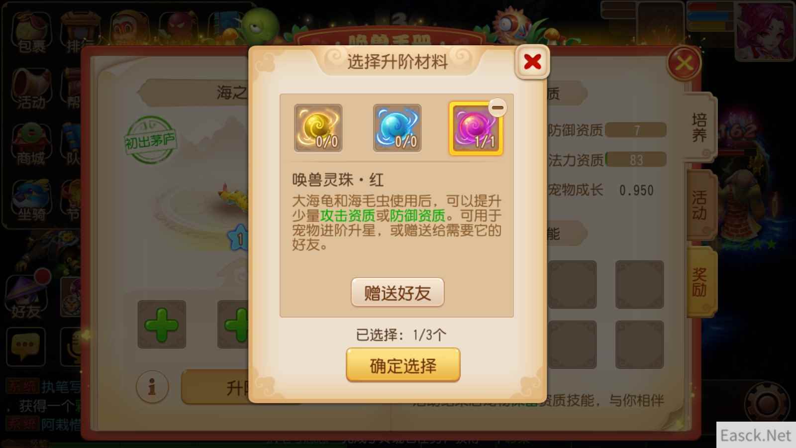 悉心培养,我的宠物我打造 在获得了属于自己的海毛虫和大海龟之后,玩家需要使用唤兽灵珠提升其资质,将其逐渐培养壮大。在活动期间,玩家只要每天活跃度达到60、80、100,就能分别获得2、3、3个唤兽灵珠。此外,玩家还能通过通关时空秘境关卡和好友赠送,获取额外的唤兽灵珠。除了提升宠物的资质外,唤兽灵珠还能用于给宠物进阶升星,让他们获得更强大的战斗表现。 在活动结束后,玩家培养的大海龟或海毛虫就将化为真正的宠物,常伴玩家左右!所以玩家为它们付出的每一分辛劳,都将获得回报!
