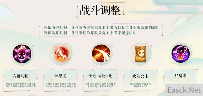 战斗调整,两大战斗机制即将改变 《梦幻西游》手游的战斗机制,关系到战斗的平衡性,每一次调整无不被外界所关注。此次《梦幻西游》手游将针对降低防御机制和降低治疗机制进行调整。具体内容包括: 降低防御机制:各种降防御效果叠加上限为目标自身面板防御的50%。 六道轮回:加强对低防御单位的降防效果,弱化对高防御单位的降防效果。 碎甲刃:加强对低防御单位的降防效果,弱化对高防御单位的降防效果。 突进、高级突进:调整忽视防御的比例范围,提升最低比例,降低最高比例。 晚歌公主变身卡:忽视物理防御效果,从8%调整为5%。 降低治疗机制方面:各种降低治疗效果叠加上限不超过50%。 尸腐毒:提升治疗效果。 这两大战斗机制的调整,也许会给喜爱战斗的玩家带来新的战术思路。