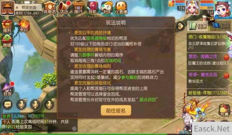 随机应变,赛制升级策略升级 相较于第一赛季,九黎之墟第二赛季的赛制也变得更人性化。 在匹配逻辑方面,玩家所在帮派将被匹配到服务器等级更相近的帮派,100级以下玩家也将获得适当的属性补偿。这一调整将有利于更多实力相当的帮派能被分配到同一地图中进行对战。 此外,九黎事件的解锁内容顺序将得到调整,每周三晚七点攻城时间也将被取消。这一调整将使玩家有更多闲暇时间享受更多游戏内容。 在去除主城晶石产出,建造要塞也将要消耗一定晶石之后,玩家将需要更合理地分配晶石资源。 最后,玩家还可以在本赛季中同时发起3场集结,并减少参与集结的消耗体力。帮派管理人员可以自由选择堂会加成,并获得对驻守在外的成员使用据点召回功能。 根据赛制的调整,每一个帮派应对九黎之墟的策略也将有所不同。帮派管理人员需根据实际情况,妥善利用新赛制,帮助帮派赢到最后!