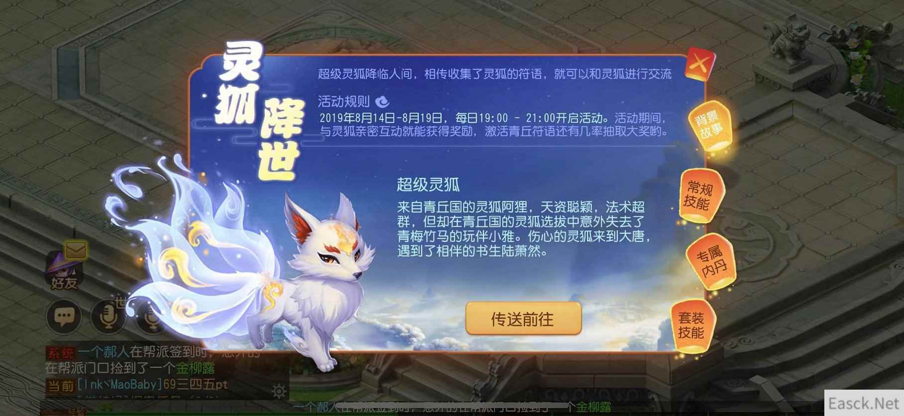 超级灵狐现在已经降临三界,期待着与亿万少侠一同入世,开启三界新冒险!如果少侠想要与这一充满灵性的神兽来一次亲密接触,那千万别忘了抓紧最后时机,前去完成相关任务。在了解超级灵狐故事的过程中,少侠也许也会得到它们的信任呢? |