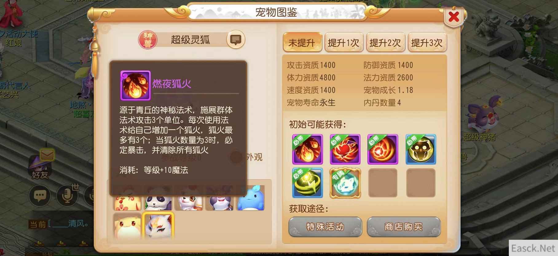 燃夜狐火,超级灵狐技能全解析 和所有神兽一样,超级灵狐也拥有自己的专属技能。它的专属技能燃夜狐火能够在施展群体法术攻击3个单位的同事,给自己增加一个狐火。当狐火数量为3的时候,此次攻击必定产生暴击,并清除所有狐火。这一技能赋予了超级灵狐爆发性的法术输出能力,相信它的到来,能给予玩家更多的新战术思路。 除了专属技能燃夜狐火外,超级灵狐还拥有高级魔之心、高级法术波动两大绑定技能,以及感知和会心两大普通技能。玩家可以根据自己所需,使用其他魔兽要诀覆盖感知和会心,以提升超级灵狐的实力!