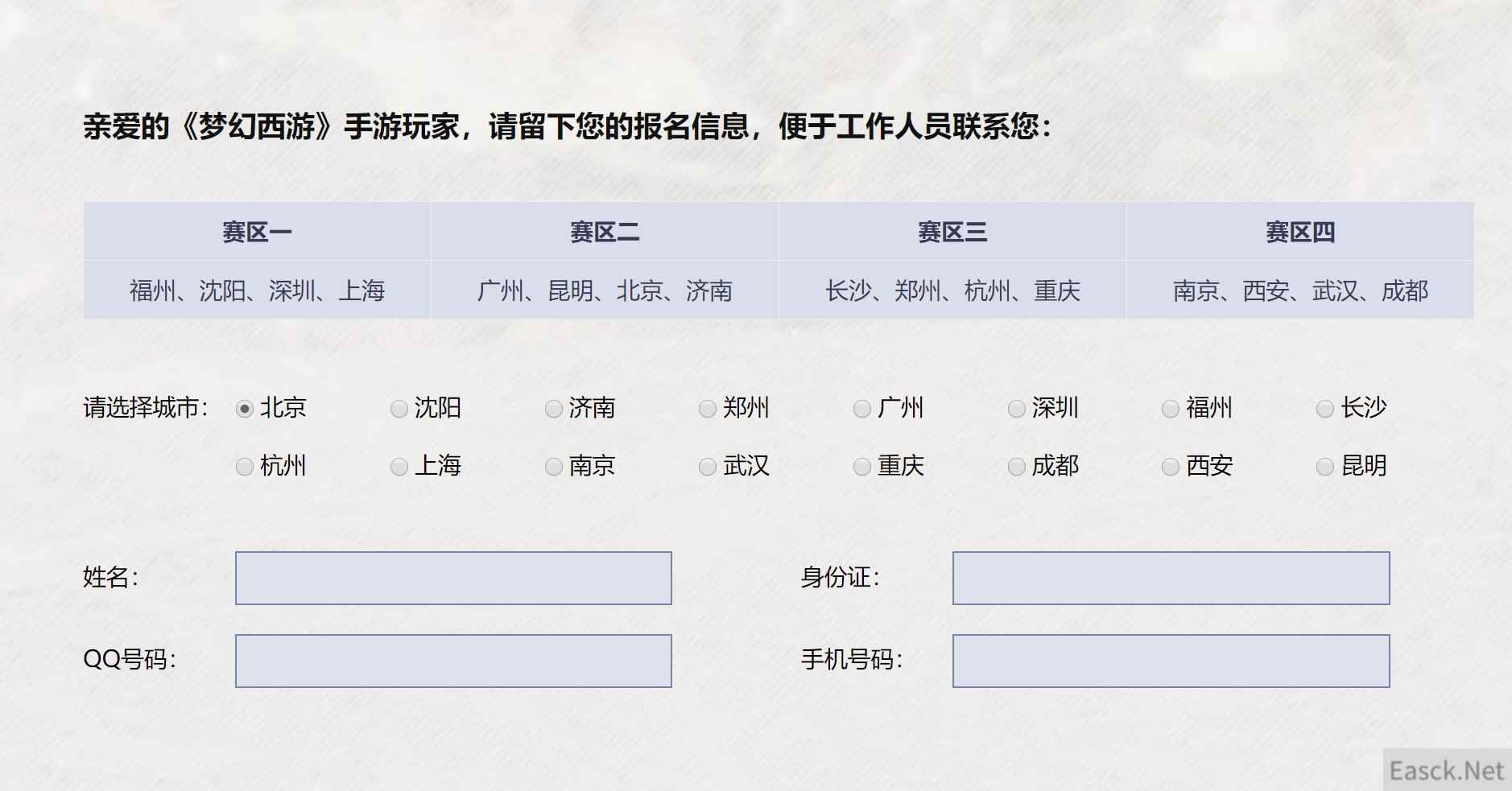 报名开启!城市英雄争霸赛首战锁定9月21日 《梦幻西游》手游2019城市英雄争霸赛已经于9月8日开启报名阶段。从即日起至10月12日,玩家可以前往活动首页留下自己的联系方式,选择相应城市报名参赛,获取参赛码。 在成功报名后,玩家即可使用对应帐号登录比赛专用服务器,创建角色和门派,设置角色相关数据,寻找与自己气质相投的队员。在9月21日、10月13日两天时间里,参赛玩家和队友可以于14:00之前到达赛点,一同对战。届时,在每一轮海选赛阶段中获得前4名的战队将获得城市赛资格!