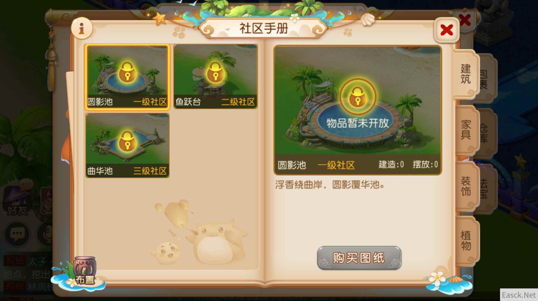 选我所爱,社区布置人人有责 社区是一个具有极高自主性的空间,作为社区居民的玩家,可以根据自己的喜好去装扮社区。只要完成诸如购买、材料生产、图纸解谜等活动,玩家即可获取各种社区生产材料,并消耗这些材料,建造社区建筑以及对应家具,并将其布置到中心岛上。 在美丽的中心岛,随机的天气系统赋予了中心岛以不同的色彩,若是玩家在中心岛中还种植了各种花草树木,那么随着天气以及健康度的变化,这些花草树木也将呈现出不同的风貌。