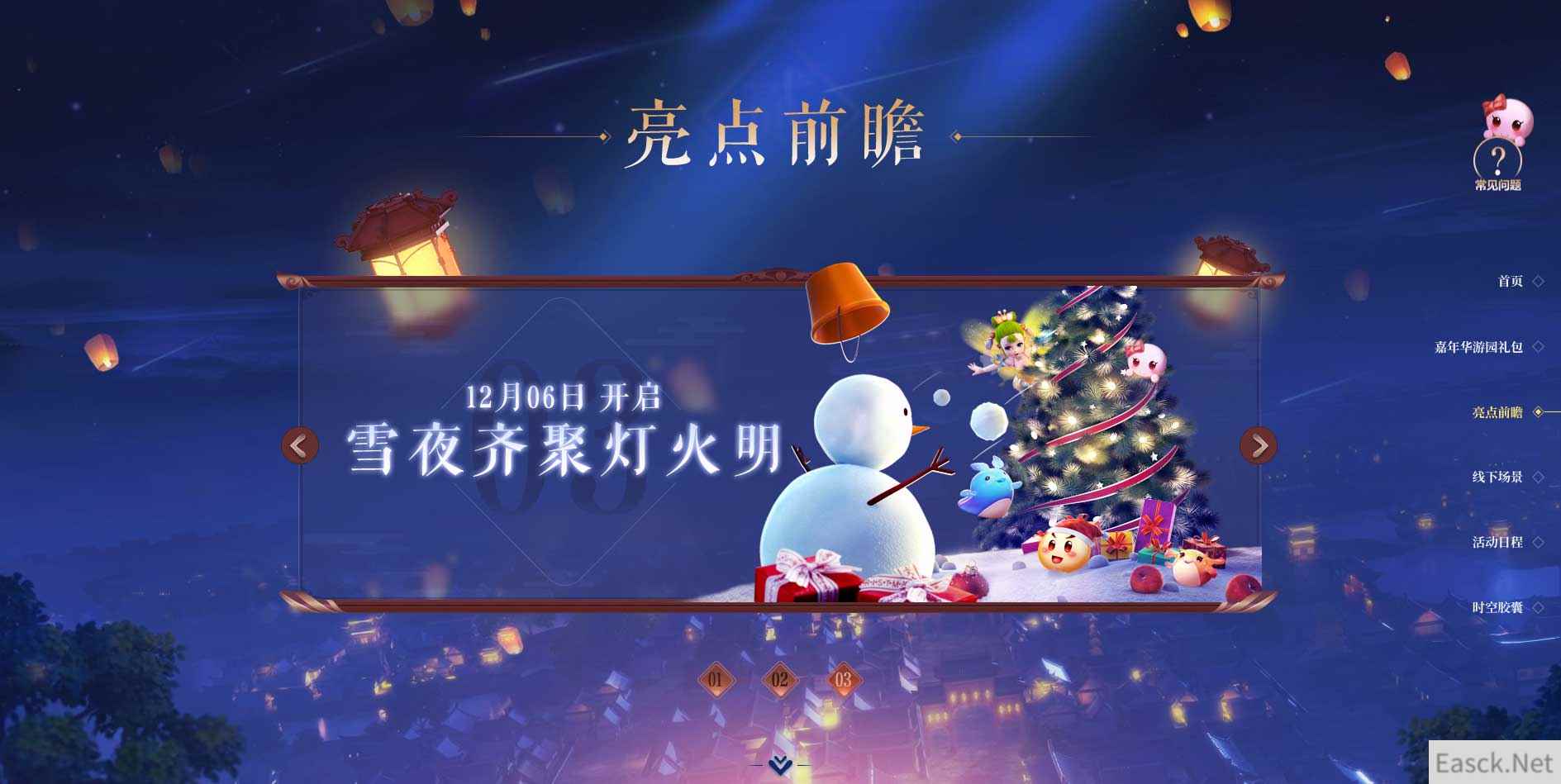 《梦幻西游》手游雪夜齐聚灯火明活动 嘉年华现场,《梦幻西游》手游将为关心热爱游戏的玩家,送上重磅爆料与诸多惊喜。同时,一年一度的X9联赛总决赛也将在12月21日决出胜负,精彩赛事不容错过。除此之外,雪夜齐聚灯火明活动将于12月06日开启,快来一起融入温馨的嘉年华节日氛围吧。
