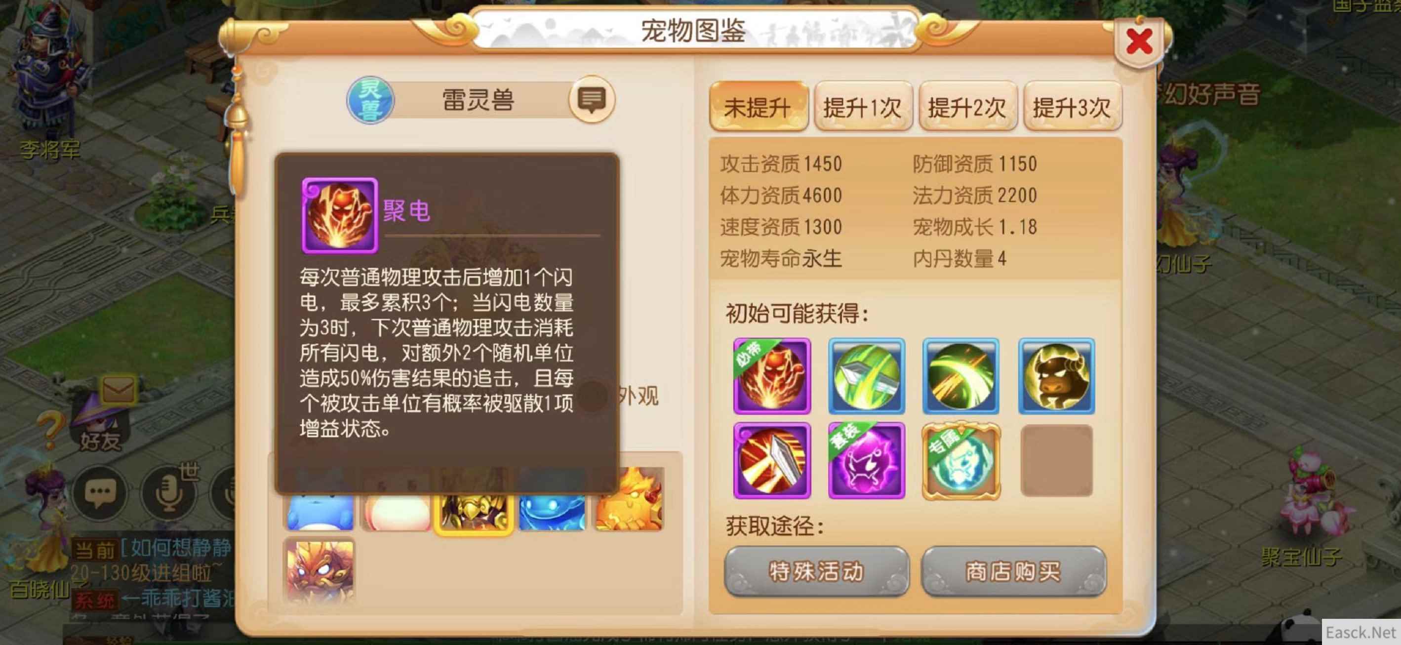 再添新战力,四系灵兽特殊技能一览 每一种四系灵兽都有一个绑定的特殊技能,在合宠和打书过程中,这一技能也不会被丢失。四系灵兽对应技能如下: 雷灵兽必带技能聚电:每次普通物理攻击后增加1个闪电,最多累积3个;当闪电数量为3时,下次普通物理攻击消耗所有闪电,对额外2个随机单位造成50%伤害结果的追击,且每个被攻击单位有概率被驱散1项增益状态。 水灵兽必带技能筑浪:受到超过最大气血上限15%的伤害后增加1个水雾,最多累积3个;当水雾数量为3时,消耗所有水雾形成一个筑浪,筑浪可以冰冻下一个攻击者,并在冰冻后筑浪消失。 火灵兽必带技能焚焰:每次释放1次火系法术后增加1个火焰,最多累积3个;当火焰数量为3时,下次释放火系法术攻击消耗所有火焰,增加1个攻击目标,且使所有被攻击目标灼烧。 土灵兽必带技能垒岩:每次普通物理攻击后增加1个岩块,最多累积3个;当岩块数量为3时,下次普通物理攻击消耗所有岩块,必定造成暴击,且使目标进入失忆状态。 在装备上宠物专属内丹后这些灵兽将在战斗中获得特有的增益状态,而宠物装备套装效果,则会对这些增益状态进行强化,让它们在战斗中发挥更强大的实力!