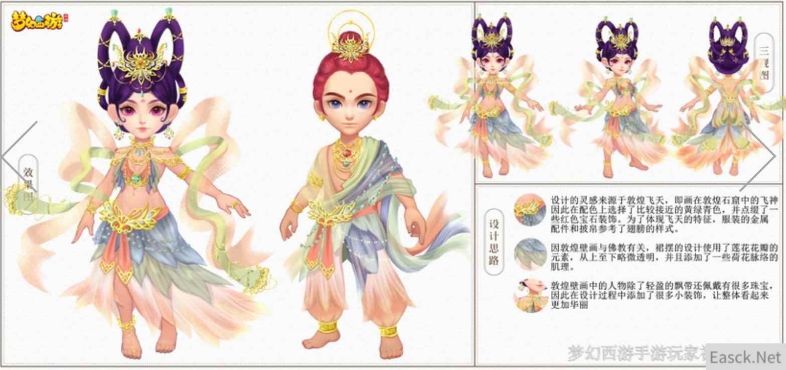 也有玩家从敦煌飞天中寻找灵感,将敦煌元素带到游戏之中,展现出角色的圣洁和华丽气质。