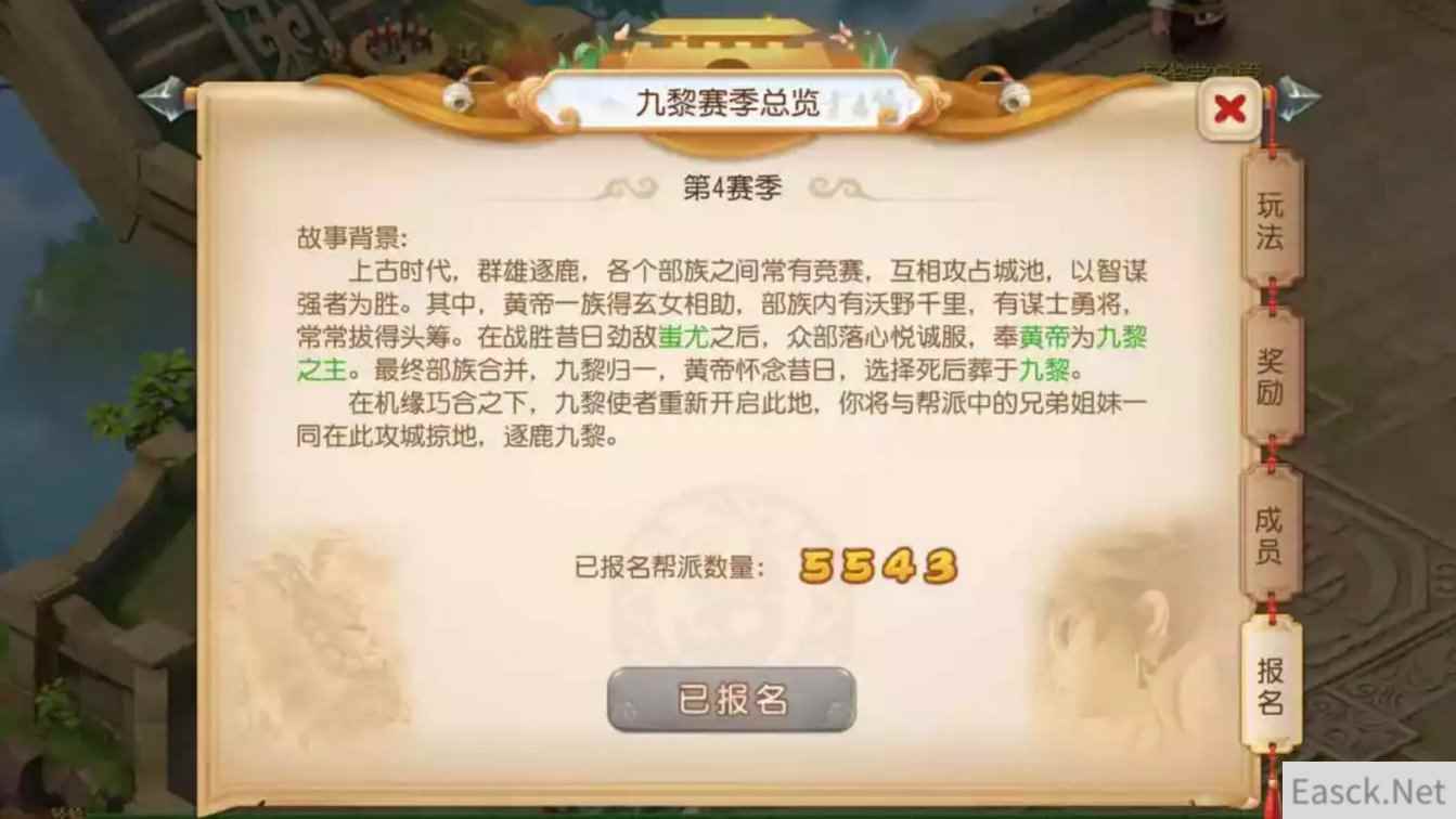 一战方休!九黎之墟战斗打响 2月13日,九黎之墟第四赛季正式打响。相对于过往赛季,本届九黎之墟赛程缩短为五周,并加入了全新地图中心岛。玩家从即日起至3月19日,在九黎之墟中攻城略地,并参与争夺具有更高资源土地和独有主城的中心岛,让自己在九黎之墟中获得更丰厚的回报。 由于赛程时间的调整和新地图的引入,九黎之墟的战斗也将变得更为激烈。如果参赛帮派想要获得更好成绩,请务必根据帮派实际情况制定好相对策略,让更多的帮派成员能在九黎之墟中找到最适合自己的位置!