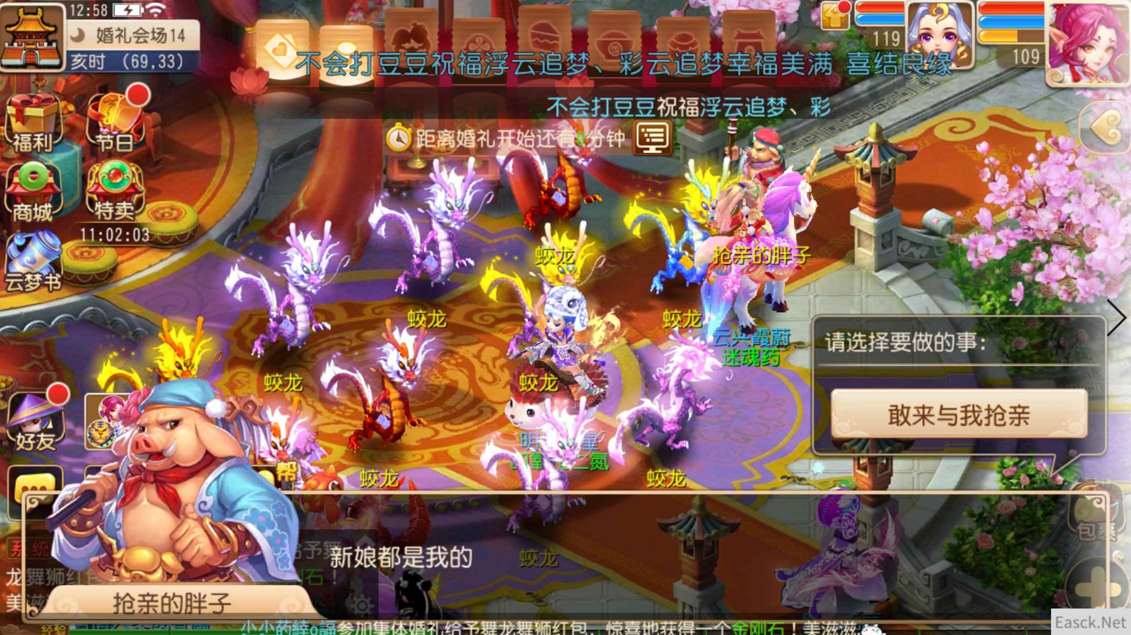 集体婚礼:月下见证你的心 爱情是两个人的事,但相爱的两人往往愿意将这份幸福传递给更多人。《梦幻西游》手游愿帮助各位有情人实现这个愿望。在2月13日~2月14日,拥有夫妻或情侣关系的两人可以组队,与月下老人对话,报名参加第四届集体婚礼。参与此次婚礼的新人,不仅能够感受别具一格的集体婚礼,还能赢得专属集体婚礼证书以及限时新人喜服。如果玩家在情人节当天举办喜宴,更能享受八折优惠哦!