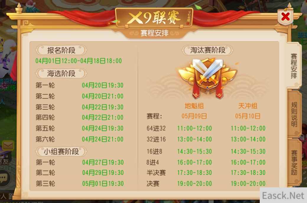 抓紧时间!第14届X9联赛报名阶段即将截止 4月18日,《梦幻西游》手游第14届X9联赛报名阶段将正式截止。在经过一天的准备时间后,来自精锐、勇武、神威的所有参赛战队将于4月20日打响6轮海选赛。在此之后,各大组别排名前128名的战队将晋级天冲组小组积分赛,而第129名~256名战队则将晋级地魁组小组赛。并于4月27日以四个战队为一个小组,进行三轮组内战斗,最终每个组别前两名战队将进入接下来的淘汰赛阶段。 在5月9日和5月10日,地魁组和天冲组淘汰赛将分别打响,只有在这一阶段中获得全胜的战队,才能站在本届X9联赛之巅,问鼎冠军。在层层选拔之下,谁将如愿封王?如果玩家也想要站在领奖台上,或是在赛事中与实力相当的对手切磋技艺,那么现在就抓住最后时机,报名参赛吧!