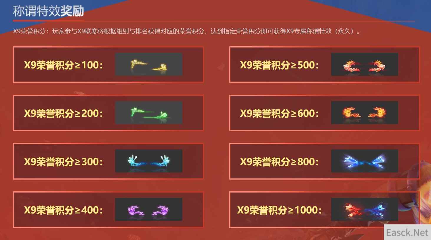 荣耀见证,多重好礼相赠勇者 以战养战,勇夺最强!在本届X9联赛,《梦幻西游》手游一如既往地为每一支认真参赛的战队准备了丰厚好礼。其中,根据玩家在比赛中获得的成绩,玩家将被授予包括开明兽灵珠、高级洗炼石、高级魔兽要诀、战斧队标、高级藏宝图、金钥匙、银钥匙、专属称谓在内的一系列好礼。 而参赛战队在完成赛事,获得首胜后,还能获取海选完成礼包、海选首胜礼包、天冲组完成礼包、地魁组完成礼包等好礼。 此外,系统还将根据玩家参与X9联赛时所划分的组别和排名,为玩家积累一定的荣誉积分。在达到指定荣誉积分后,玩家即可获得永久的X9专属称谓特效。只要持续参赛,每一位参与者都能向外界晒出自己的战绩,赢得更多人瞩目!