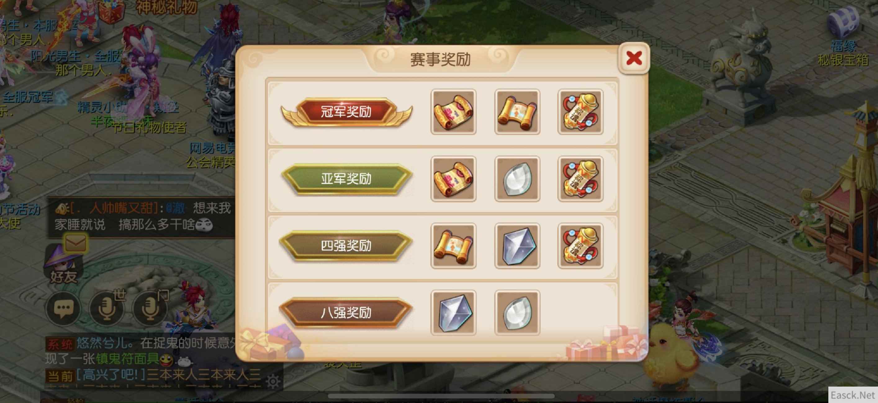 为胜利加冕!海量奖励等你来赢 为了感谢玩家对本届团队争霸赛的支持,《梦幻西游》手游为参赛战队准备了丰厚好礼。 获得冠军的战队将赢得高级魔兽要诀、高级藏宝图、团队赛冠军称谓,获得亚军的战队将赢得高级魔兽要诀、炼妖石、团队赛亚军称谓,获得四强的战队则可以获得高级藏宝图、星辰晶石、团队赛四强称谓,跻身八强的战队则将赢得星辰晶石、炼妖石,最后,《梦幻西游》手游还将为十六强战队送上炼妖石和未鉴定的纹饰一份,以感谢他们的参与。 相信这些奖励,将让参赛队伍在战斗中拼尽全力,赢得胜利!