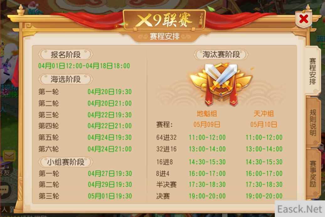 激战进行时, X9联赛海选赛打响 4月20日,《梦幻西游》手游第14届X9联赛海选赛阶段正式开赛。迄今为止,所有参赛战队已经经历了两轮战斗,在接下来的4月22日和4月24日比赛日中,他们还将先后进行4轮战斗,以赢得晋级4月27日小组赛的资格。 届时,在海选赛阶段获得各自组别1~128名的战队将晋级天冲组小组赛,而129~256名战队则将进入地魁组小组赛,并在其中以4个战队为一个小组进行3轮组内战斗。获得所在小组积分前2名的战队将在5月9日(地魁组)和5月10日(天冲组)打响淘汰赛,向终极荣耀发起冲击1 由于本届X9联赛对淘汰赛匹配系统进行了优化,让种子选手分散到不同组别,不仅保证玩家能够与不同风格的对手进行对战,同时也意味着在淘汰赛中脱颖而出将变得更具挑战性!