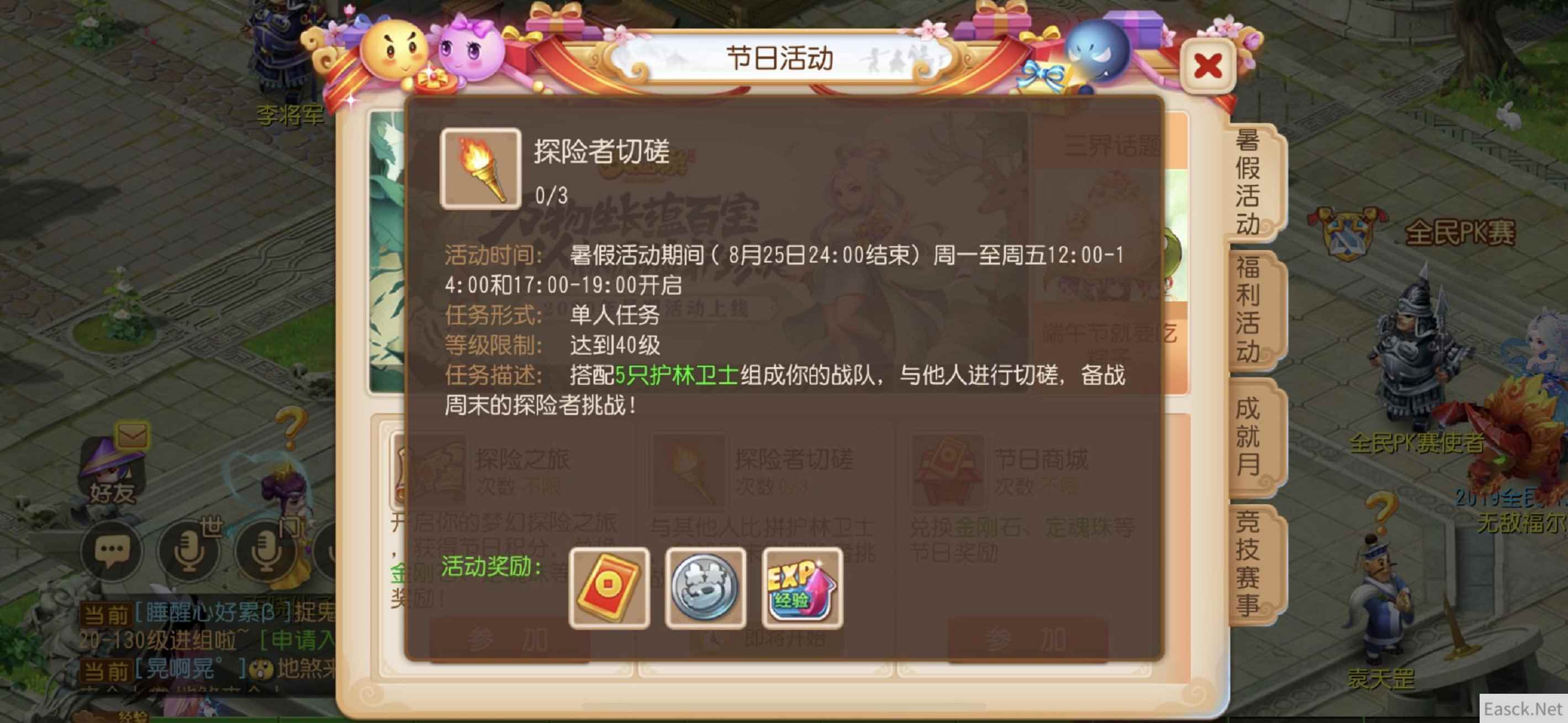 探险之旅:结交山野精灵,探索背后故事 既然暑假已经到来,何不趁此时机,出门纵览三界风光?即日起至8月25日,玩家可以通过每日登录和积累活跃度获取探险券,参与探险之旅,在不同的遗迹和对应场景中,寻找各种宝藏。在此期间,玩家将邂逅不同的事件和灵兽,收服山野精灵,挑战最终BOSS。 随着玩家探险的深入,玩家也将累积越来越多的节日积分,兑换金刚石、定魂珠等珍稀道具。