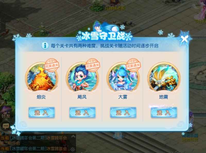 冰雪守卫战:守护雪之国就在此刻 随着异常气候增多,冰雪世界也迎来了新的危机。从即日起至1月5日,玩家可以与好友一起组队,帮助雪人王使用卡牌击败熔炎、飓风、大雾、地震四大妖魔。在此过程中,雪人王也将为战胜妖魔的玩家送上星辰晶石、魔兽要诀、宠物内丹等回报。