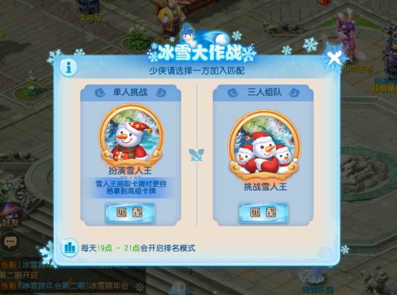 冰雪大作战:是攻是守由你决定 12月24日,紧张刺激的冰雪大作战也将正式打响。玩家可以在战斗中选择扮演雪人王,或三人组队向雪人王发起挑战。双方可以选择不同的卡牌帮助战斗,提升胜算。而在每日的19:00~21:00,玩家更可以通过参加排位模式,赢得神兜兜、定魂珠、金刚石等好礼!