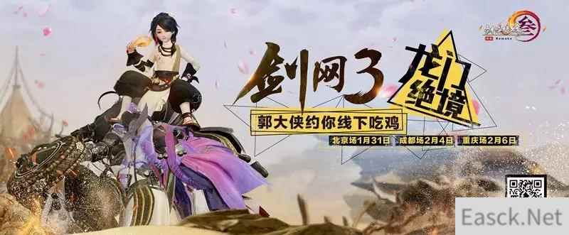 《剑网3》龙门绝境玩法自上线以来,深受广大侠士喜爱,一时间可谓是高手辈出。时逢年底,龙门王者的巅峰之战《剑网3》线下吃鸡赛也将重磅出击!本次比赛设有北京、成都、重庆三个赛点,《剑网3》制作人郭炜炜也将现身活动现场与诸位大侠们千里相聚,共同吃鸡!