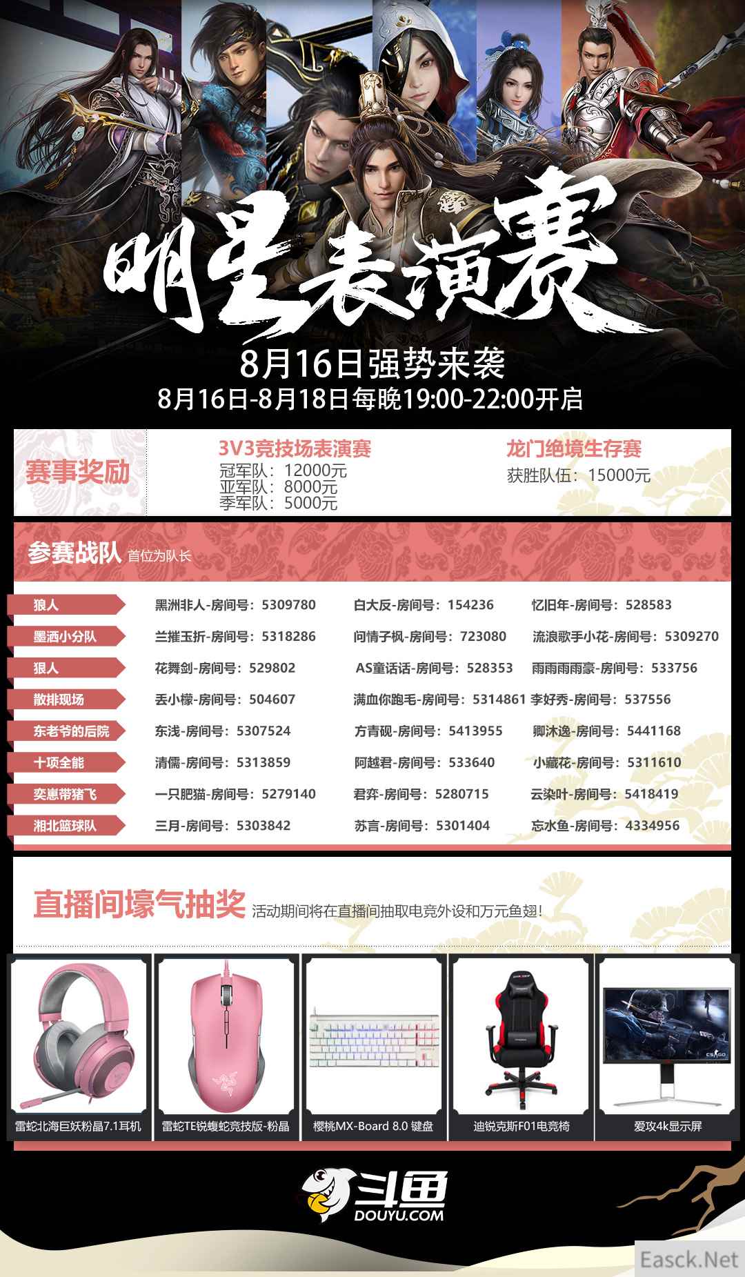 9年之后的2018年,约定日期已到,一张张别有深意的邀请函送入到一位位剑网大侠手中,每一份邀请函中都赫然列着这几个大字:诚挚邀请各大侠参加8月16日—到8月18日每天19:00到22:00的明星主播表演赛。此名为主播表演赛,实为当选武林盟主的武林大会。而江湖之中也有消息透露,此武林大会是由神秘组织斗鱼直播平台举办。其精彩场面届时将无与伦比的精彩。