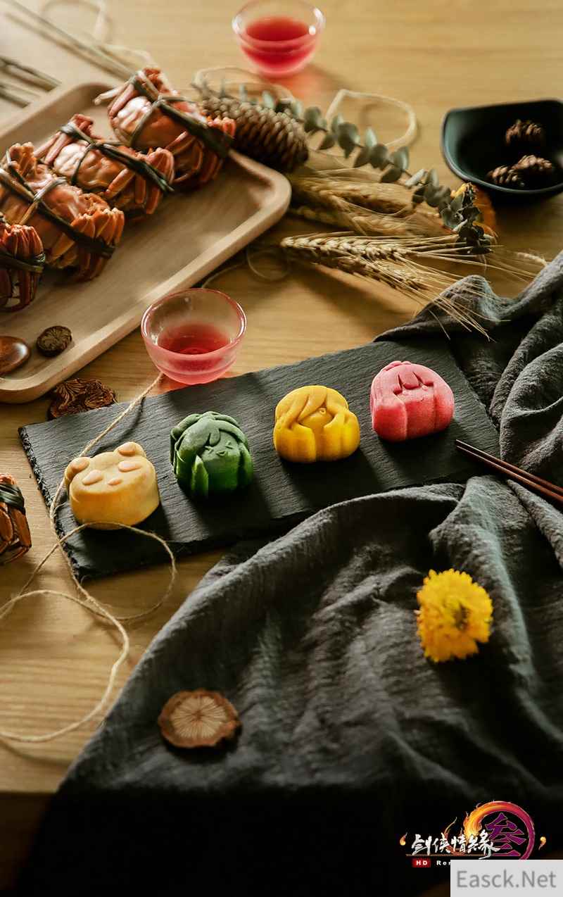 P2:“梦回稻香”月饼礼盒 【Q版设计俏皮可爱 五种口味任君品鉴】 “梦回稻香”定制月饼礼盒共推出五种口味月饼,分别是流心奶黄月饼、流心芒果月饼、玫瑰豆沙月饼、抹茶红豆月饼以及核桃酸乳酪。采用了时下流行的桃山皮加广式改良馅料,口感更加贴近当前年轻人的喜好。除了味道上乘外,“梦回稻香”月饼礼盒在月饼设计上也是下足了功夫,月饼选用了侠士们熟悉的穆玄英、莫雨、陈月以及诸多中秋元素的Q版形象加以定制,外形美观,俏皮可爱。 ·流心奶黄月饼——金黄流沙,奶香四溢。 ·流心芒果月饼——香甜幼滑,果味飘香。 ·玫瑰豆沙月饼——以花入味,绵软细腻。 ·抹茶红豆月饼——软糯可口,淡雅芬芳。 ·核桃酸乳酪月饼——细腻香醇,回味悠长。