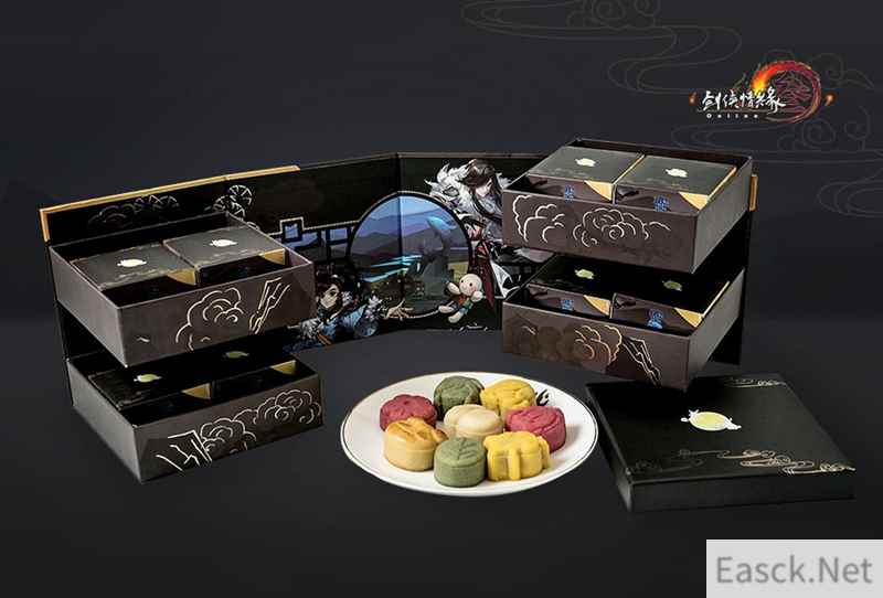 P1:“梦回稻香”月饼 【《剑网3》独家定制月饼礼盒 匠心独创尽显奢华】 本次的月饼采用了以稻香村为主题的独家定制礼盒,在设计上选用了侠士们熟悉的穆玄英、莫雨、陈月三位人物的Q版形象,并融入稻香村的场景与飘窗等元素。礼盒结构采用四层旋转设计,趣味互动不失乐趣,烫金工艺描边,彰显奢华格调。诸多细节设计,使得侠士在品尝月饼的同时,仿佛回到了这江湖初始的地方,与熟悉的NPC一同团聚,共赏中秋月!