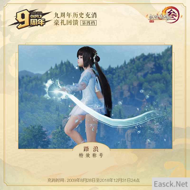 P3:周年纪念跟宠“一叶落”“暮星罗” 侠士所累计的消费金额为1440元≤充值消耗<2160元,可领取周年特效称号“踏浪”;