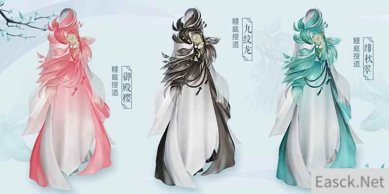 图5:披风“鲤庭授道” 售卖时间: · “鲤庭授道”披风(不绑定):10月15日20:10限量不绑定售卖1,000件(电信800件,双线200件),售价688元,不可代付。 · “鲤庭授道”披风(绑定):10月16日7:00-11月6日7:00,限时绑定,售价688元,可代付。 【简约时尚 特效外观强势推出】 除此之外,特效外观“容与逍遥”运用了时尚简约的设计风格,以简单的配饰装点修饰,层次鲜明,气质可加。特效外观共4种偏色,任君挑选。