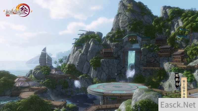 鲲鹏岛游戏实景 而且海上霸王擂的比试过程,亦是苍天君暗中选拔继承人之所在。初代苍天君方有崖与康尹两家家主约定,苍天君之位由三家传人承袭,同时被选中成为苍天君继任者的三家子嗣,则不再具备继承三家家主之位的资格,这也是出于平衡三家势力之考量。 最终方有崖将海上霸王擂的决赛之地,选在了这个无主之岛上,并以“鲲鹏”命名。取《庄子·逍遥游》之篇,寓意鲲鹏展翅,历届霸王擂之魁首将成为纵横东海,傲视群雄般的人物。
