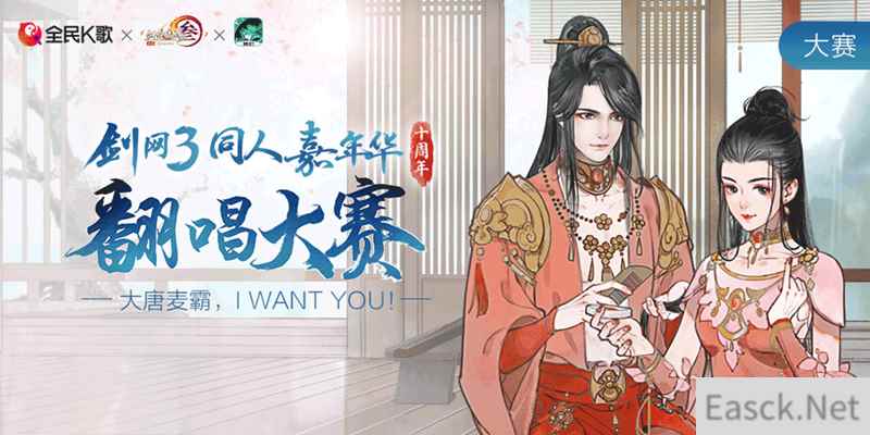 翻唱大赛主视觉海报 【携手全民K歌,十周年同人嘉年华翻唱大赛开启】 江湖高歌,梦回大唐!《剑网3》十周年翻唱大赛今日开启。有意愿参与的侠士可前往【全民K歌】,进入大赛相关信息页发布参赛歌曲。成功发布歌曲后,复制作品链接发布微博加话题 #剑网3十周年##大唐麦霸全民K歌大赛#并@剑网3有爱同人秀 @全民K歌即可报名成功。最终优胜作品将在全民K歌官博、剑网3有爱同人秀微博进行公示。心动不如行动,本次的大唐麦霸就是你!
