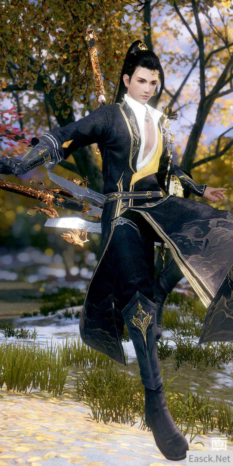 细亚琉丝玩家返图 江湖套【清枝晚影】: 江湖套【清枝晚影】以时尚的翻领设计,简约袖口富有层次感,裁剪修身大气,耐看养眼!值得一提的是,这套精致的江湖套装,在完成“世外蓬莱”历程任务即可获取对应装备拓印资格。