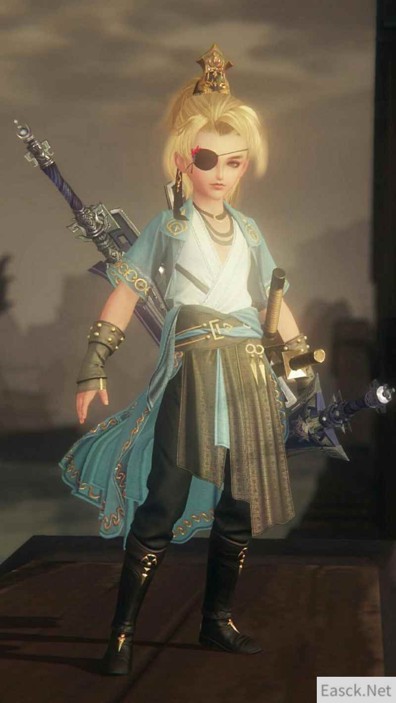 “世外蓬莱”江湖套 江湖套【缀金迷度】: 江湖套【缀金迷度】以独特的海洋风格为元素,打造别具一格的海盗服饰!自推出后便深受玩家的喜爱,尤其是颇具海盗风格的帽子,是很多玩家心中的百搭散件。