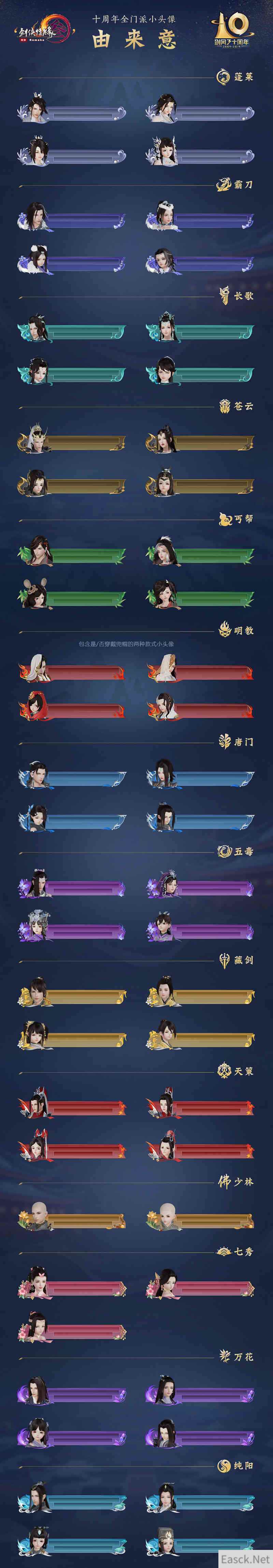 NPC同款外观“醉和春” 售卖信息: 十周年NPC同款外观“醉和春”:8月22日维护后永久上架,成衣售价28,000通宝,配套白发售价20,000通宝,黑发售价12,000通宝,成衣上架首周享受9折优惠。 为了庆贺十周年的到来,《剑网3》除了为侠士们筹备诸多福利活动以及精品外装外,还为各位侠士量身定制了一套十四门派小头像,小头像以各门派校服进行设计,选取来自各位捏脸太太优秀的脸型作品,搭配采用了各门派的经典配色配套头像框,并辅以门派特色的风物加以装点,精心打造,极具纪念意义!