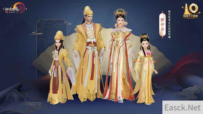 十周年红发“棠羽” 售卖信息: 十周年纪念红发“棠羽”不绑定版:8月22日20:15限量15,000个(电信12,000双线3,000)。售价38,000通宝,不可代付。 十周年纪念红发“棠羽”绑定版:8月22日20:30~9月12日7:00,限时3周。售价38,000通宝,可代付。 值此十周年梦回大唐的契机,今年的NPC同款外观“醉和春”更是选自盛唐时期的代表人物——唐玄宗和杨贵妃为原型打造!根据四大体型量体裁衣,彰显大唐多姿多彩的文化底蕴。外观采用仿唐时皇家华服设计,男款修身大方气质出众,富贵却又不失沉稳;女款将大唐女子丰韵的身材完美勾勒,尽显国色天姿!更有配套白发、黑发以供侠士进行搭配。