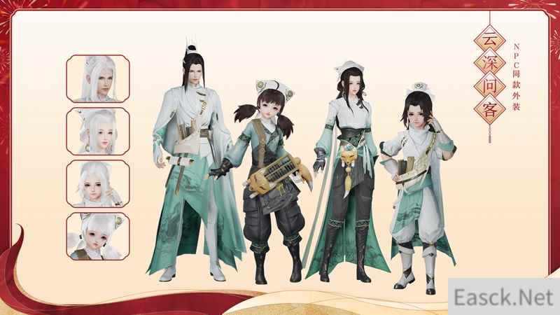 【萌趣家园主题NPC同款外装套装·云深问客】 安居江湖享悠游生活,全新萌趣家园主题NPC同款外装套装“云深问客”伴你共享居家惬意!家园社区名士同款,干净利落极具生活气息,狐狸样式配饰增添可爱之感,绣纹似山水泼墨,于低调中透出大气磅礴。还有同款白发同步登场,欢迎侠士选购! 萌趣家园主题NPC同款外装套装“云深问客”今日上架商城,详情如下: 同款成衣:2月25日7:00永久上架。售价28,000通宝。2月25日7:00至3月4日7:00首周限时9折,折后价25,200通宝。可代付,可使用折扣券。 同款黑发:2月25日7:00永久上架。售价12,000通宝。可代付,可使用折扣券。 同款白发:2月25日7:00永久上架。售价20,000通宝。可代付,可使用折扣券。