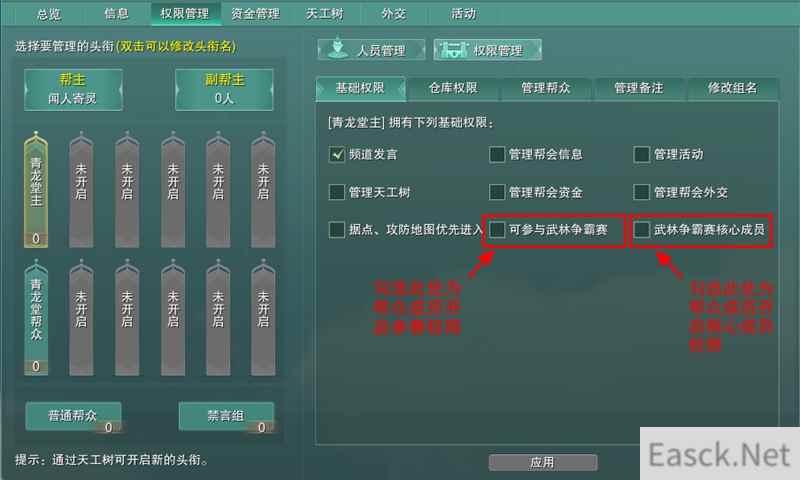 【武林争霸赛报名开启 群雄争锋谁人问鼎】 逐鹿中原群侠激战,武林争霸赛今日正式开启报名!今日维护后至2月28日24:00期间,想要报名参与到武林争霸赛的帮会只需帮主在游戏内,前往各大主城帮会区与各大门派场景中,寻找【闻千瞬】对话进行报名即可。同时,帮主可在【帮会】-【权限管理】界面内可自行选择帮众成员,为其开启参与帮会联赛或成为核心成员的权限。各位侠士还请多加留意赛事详情与最新资讯,3月3日即将开启海选赛,且让我们拭目以待!