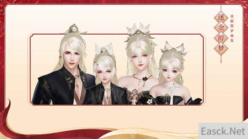 【贺岁金发·迷金醉梦 及同款动态头像框·像韵·迷金醉梦】 梦醉大唐,全新贺岁金发“迷金醉梦”今日登场!款式华丽彰显尊贵,端庄典雅极具世家贵气,精美发饰点缀更具唯美韵味!其同款动态头像框“像韵·迷金醉梦”也同步上架,头像框配有精致点缀,蝴蝶小憩枝头,美意十足! 全新贺岁金发“迷金醉梦”及其同款动态头像框“像韵·迷金醉梦”今日上架商城,详情如下: 贺岁金发·迷金醉梦 上架详情:2月25日7:00至3月25日7:00上架,限时4周。售价28,000通宝,为不绑定款。可代付,不可用折扣券。